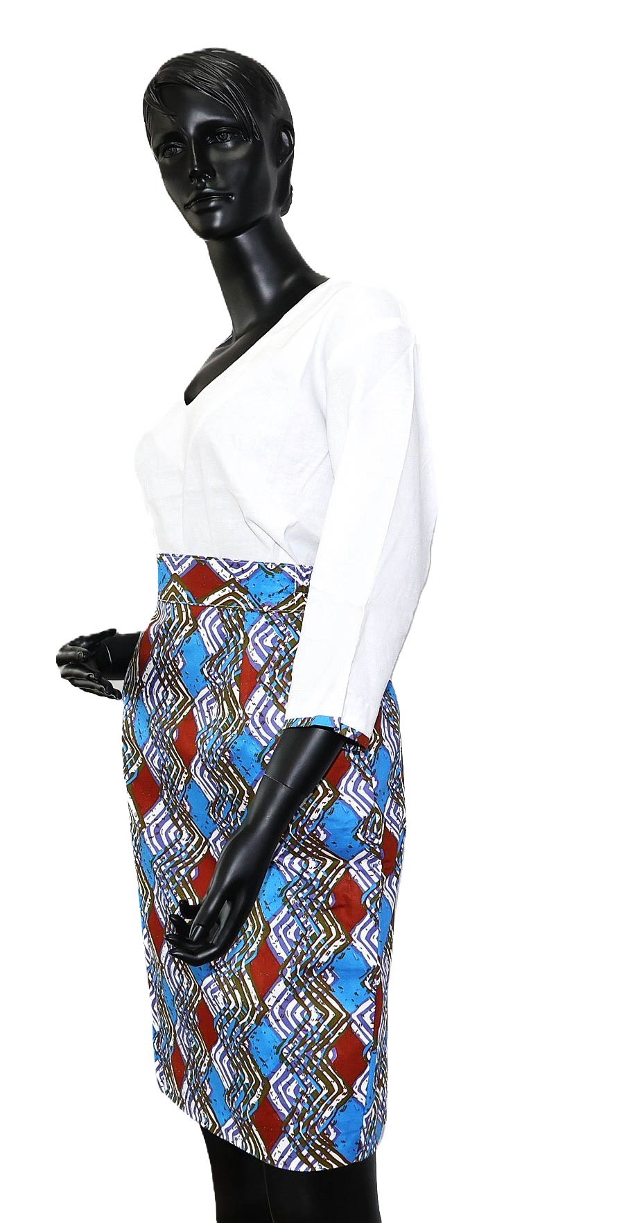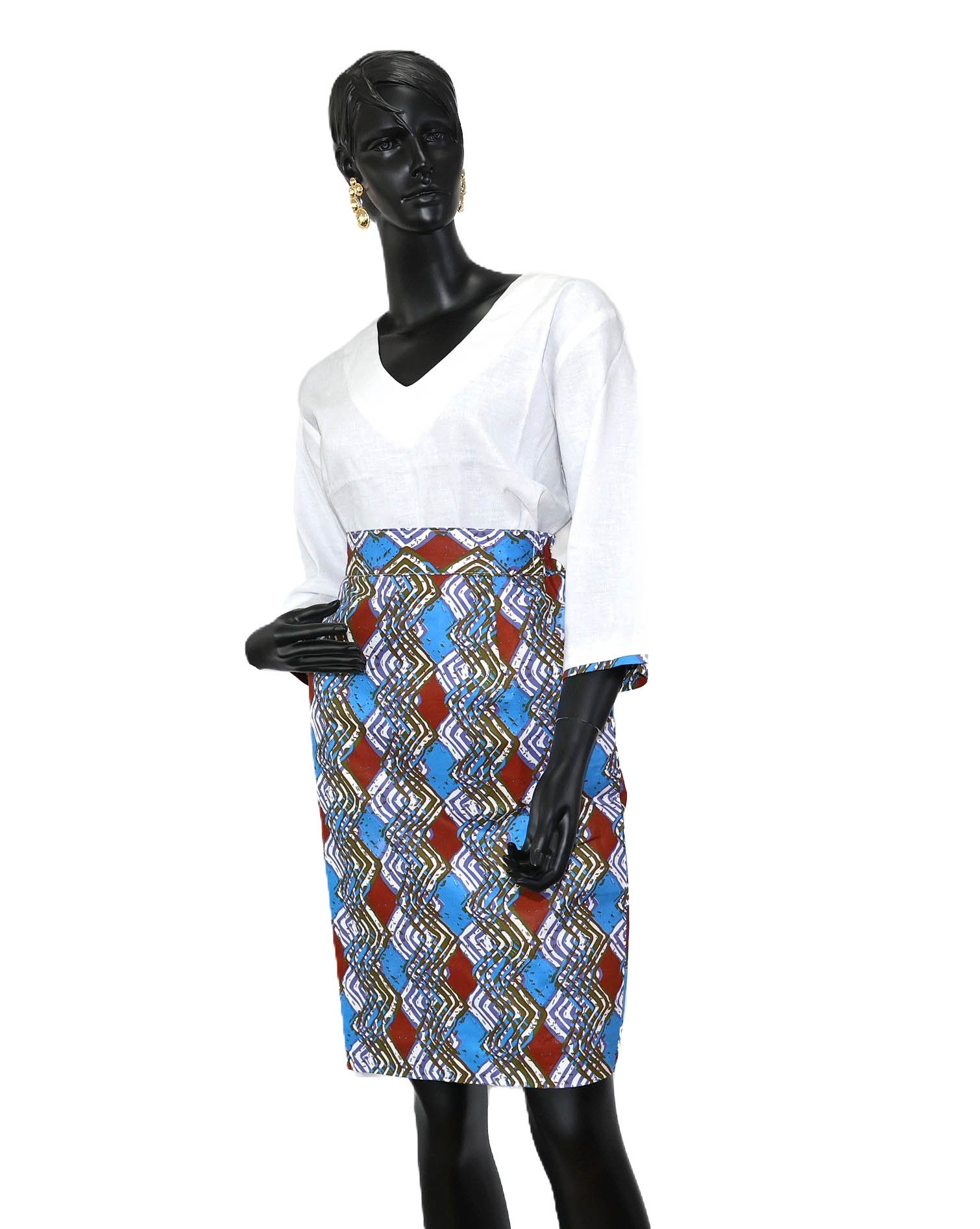 Ensemble pour Femme (2 pièces). Vous donne une elegance afro-chic unique en son genre. Haut en Lin et Jupe en Wax de qualité supérieure.