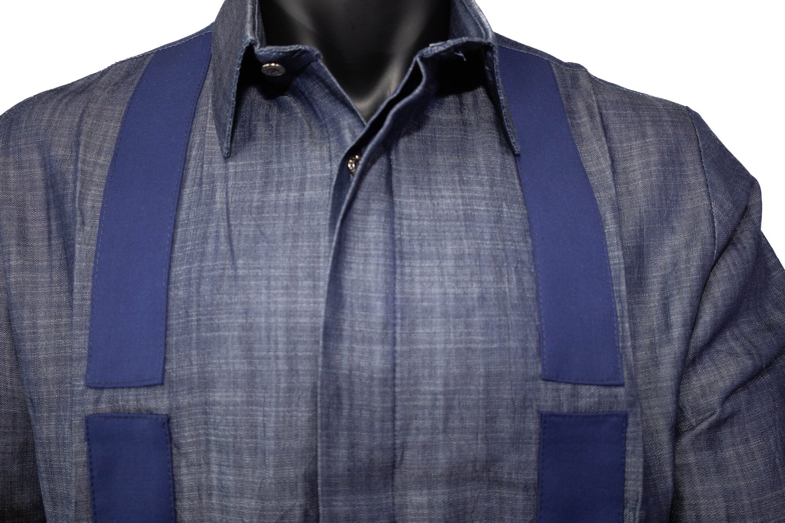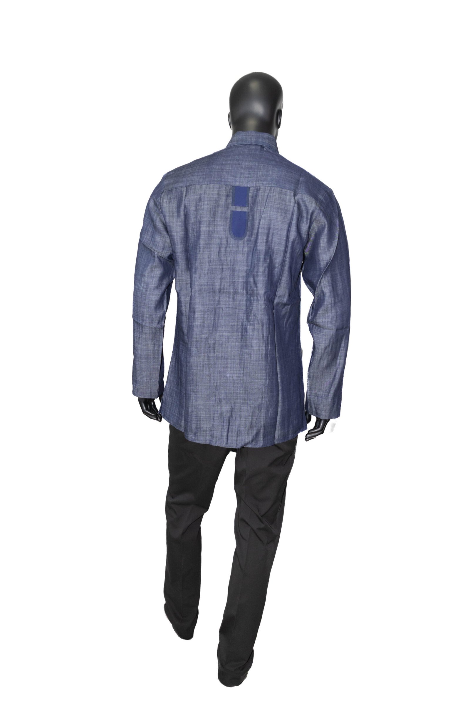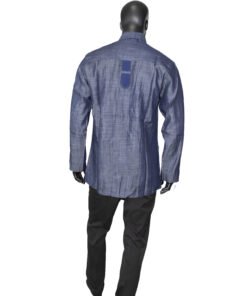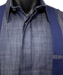 Son coloris bleu intemporel est sublimé par des bandes verticales ton sur ton qui apportent de la structure et une touche sophistiquée à la silhouette. Sa coupe classique et fluide permet de la porter aussi bien pour des occasions habillées que pour un look plus décontracté.