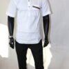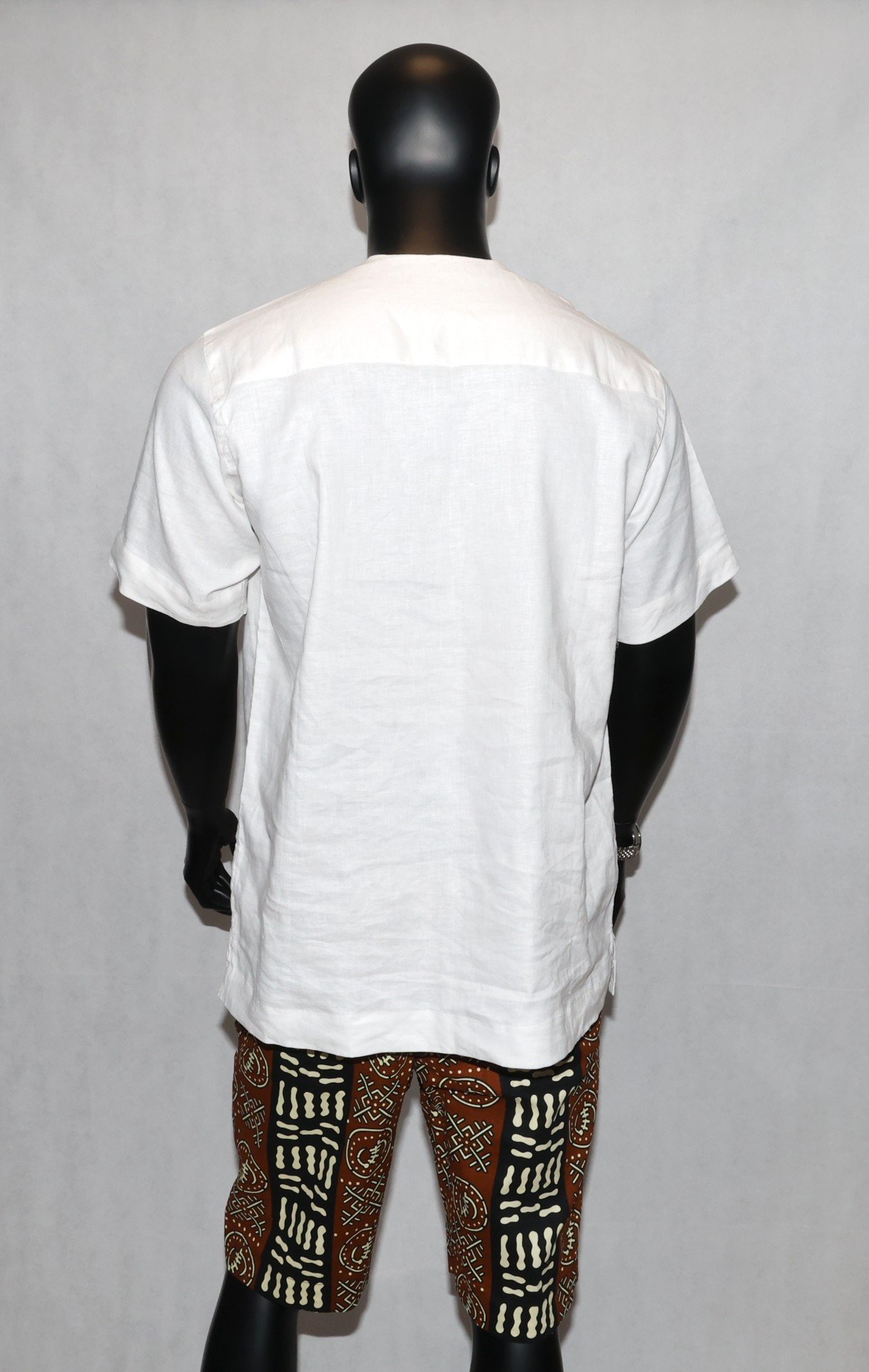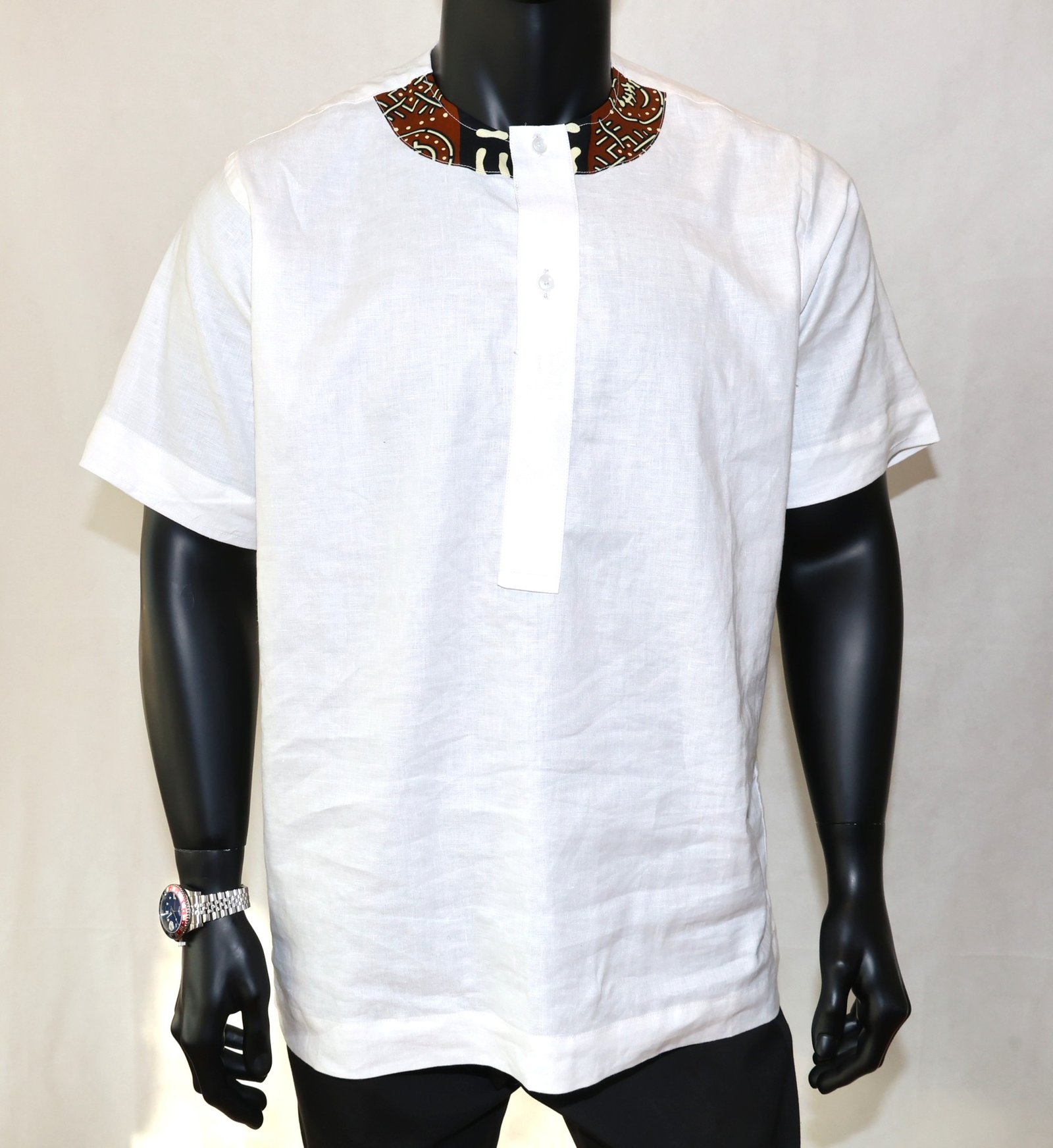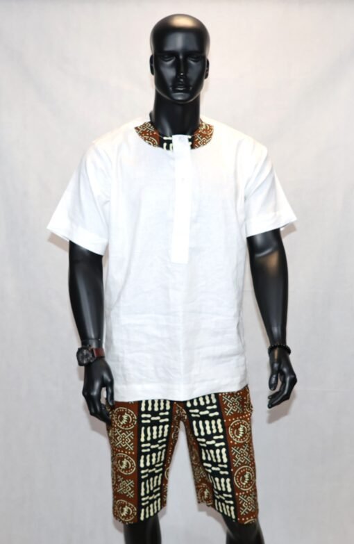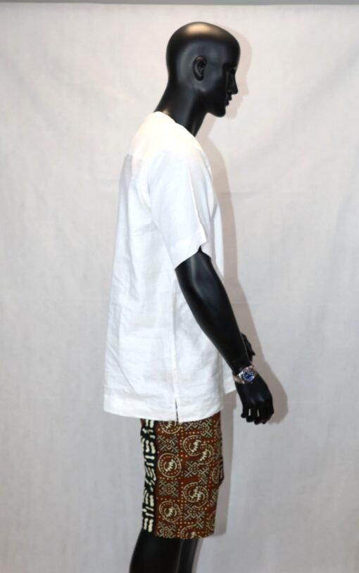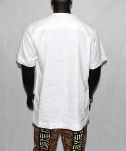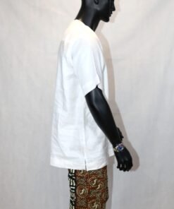 Cette pièce unique marie subtilement sobriété occidentale et esthétique africaine, offrant un look à la fois moderne et authentique.