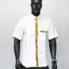 Cette pièce unique marie subtilement sobriété occidentale et esthétique africaine, offrant un look à la fois moderne et authentique.