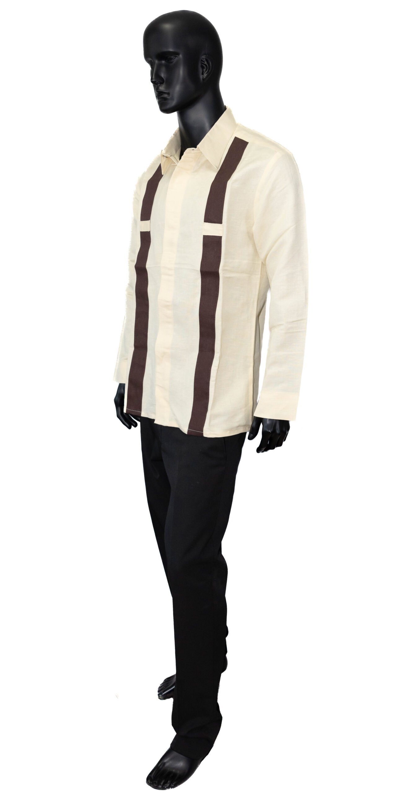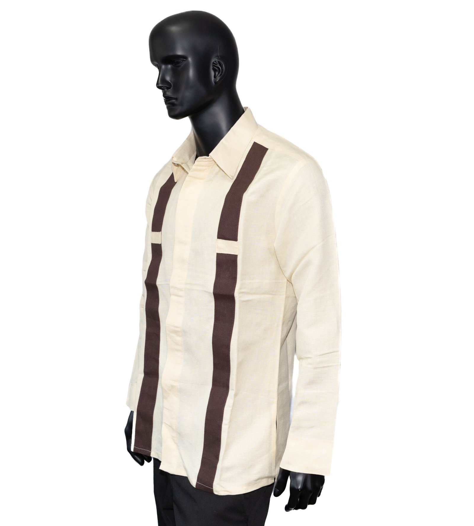 Son coloris beige intemporel est sublimé par des bandes verticales marron qui structurent la silhouette et apportent une touche moderne et sophistiquée. Sa coupe longue et fluide permet un porté polyvalent, aussi bien avec un pantalon classique qu’avec un jean pour un style plus décontracté.