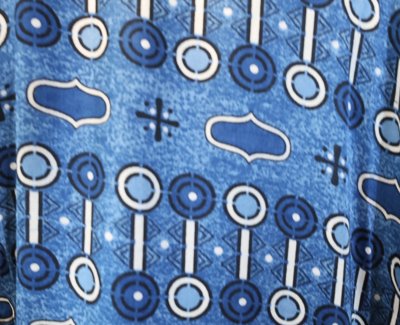 Apportez une touche d’élégance contemporaine à votre tenue avec cette tunique longue au motif graphique bleu et blanc. Son imprimé original et structuré crée un style moderne et raffiné, parfait pour rehausser une tenue simple.
