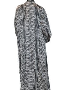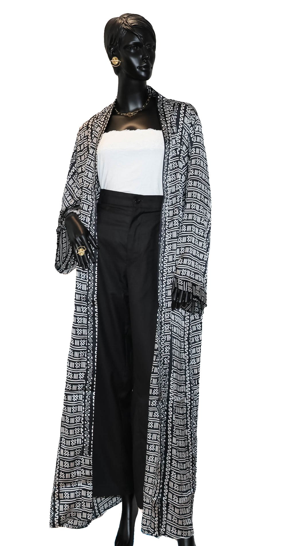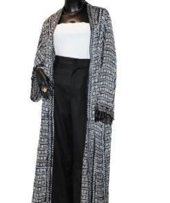 Sa coupe fluide et ouverte, inspirée du style kimono, offre un tombé élégant et un grand confort. Les manches larges et la longueur maxi créent une silhouette sophistiquée, idéale pour une allure à la fois décontractée et chic.
