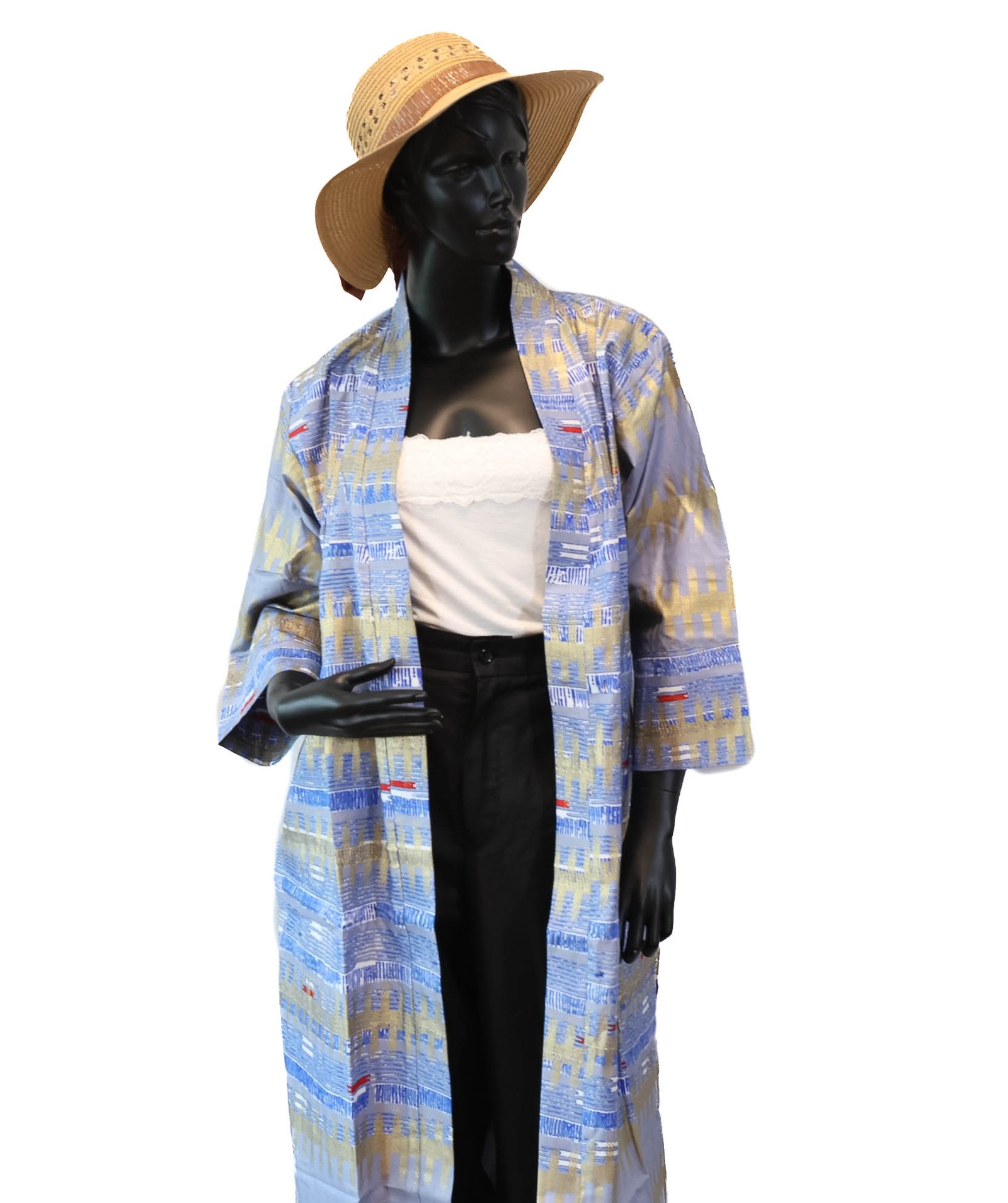 Sa coupe longue et ouverte, inspirée du style kimono, assure un tombé fluide et confortable. Les manches larges apportent une silhouette élégante et décontractée, idéale pour sublimer une tenue simple.