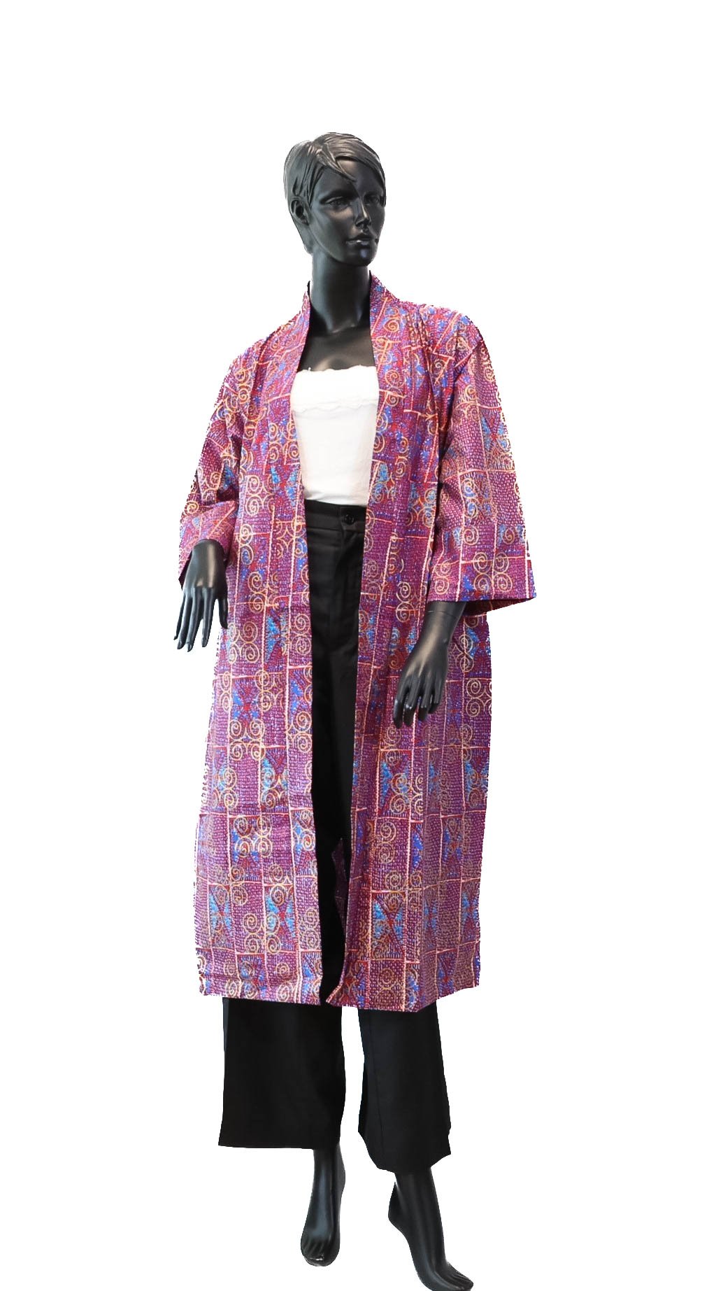 Sa coupe longue et ouverte, inspirée du style kimono, assure un tombé fluide et confortable. Les manches larges apportent une silhouette élégante et décontractée, idéale pour sublimer une tenue simple.